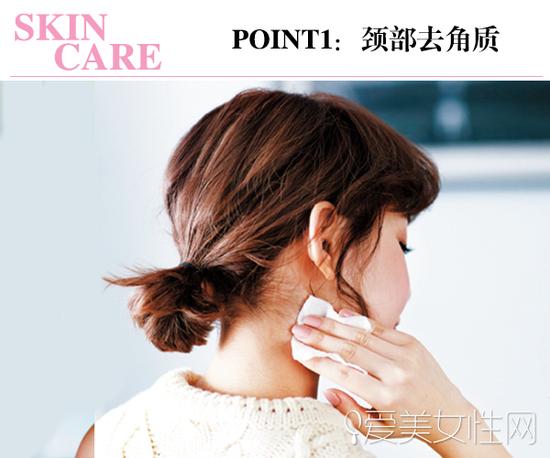 POINT1:担心去角质品对颈部肌肤太刺激,卸妆时,顺道将化妆棉带到脖子擦拭,也能加强去污力。